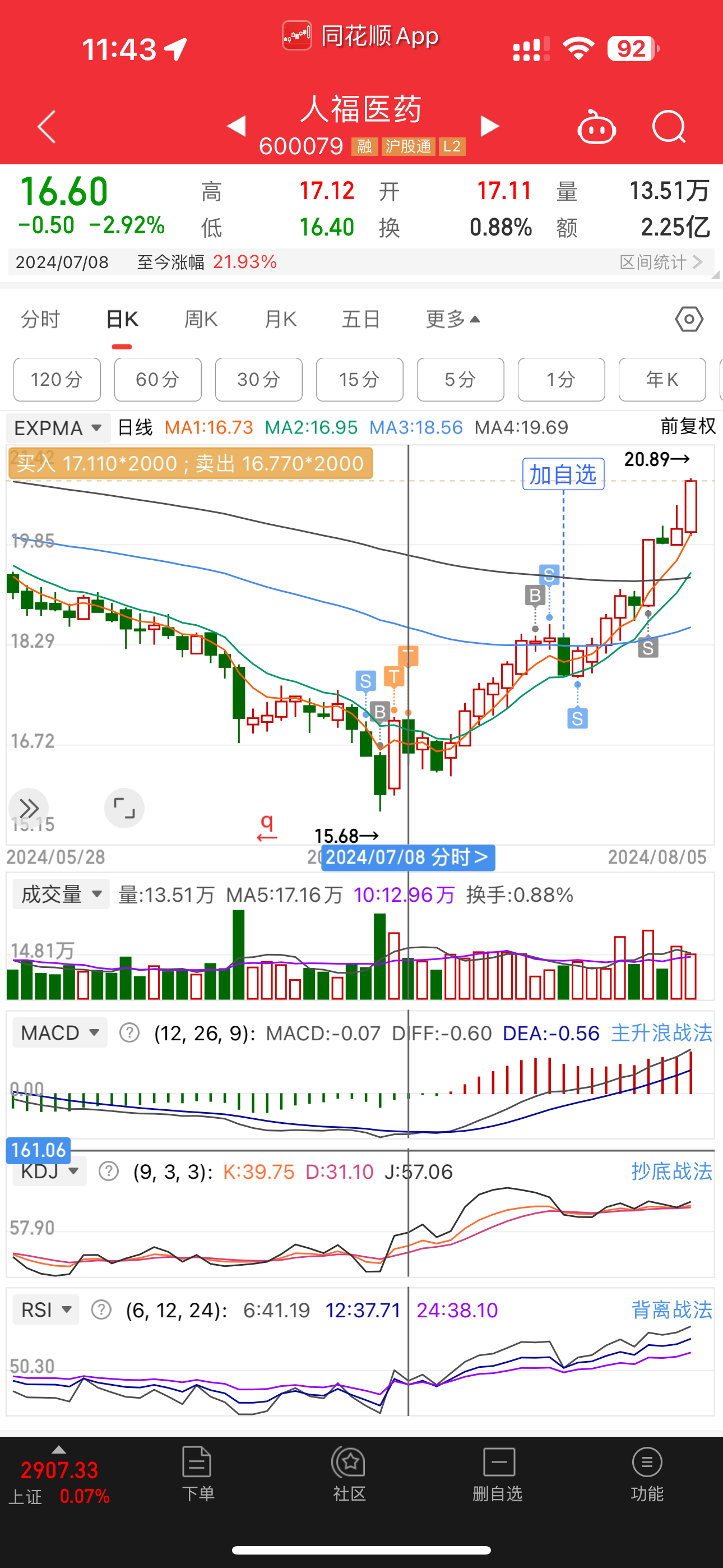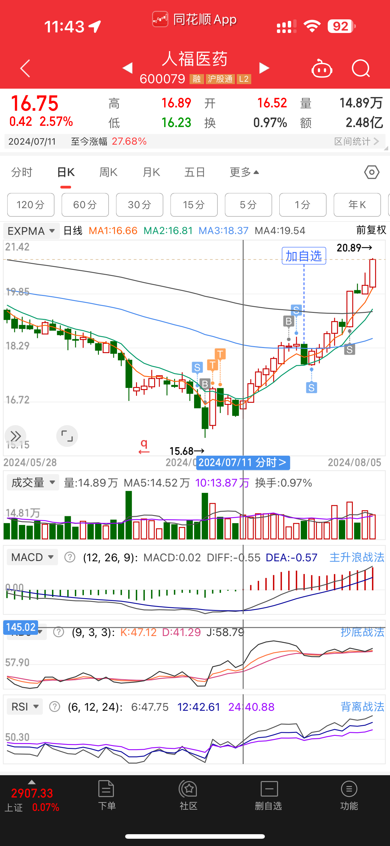 在券源不断较少的趋势下,人福医药在2024年7月11日迎来了多头大反攻,从此之后夺取趋势开始一发不可收拾