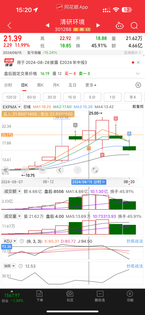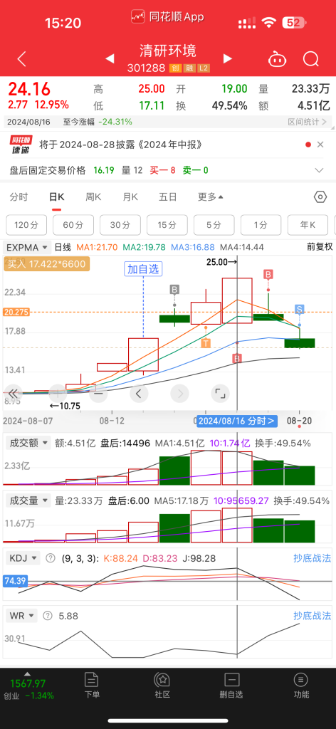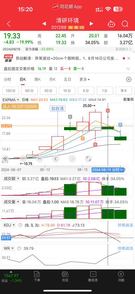 下面我们来反思一下 清研环境这只股票 是怎么操作失误,亏的一塌胡涂的